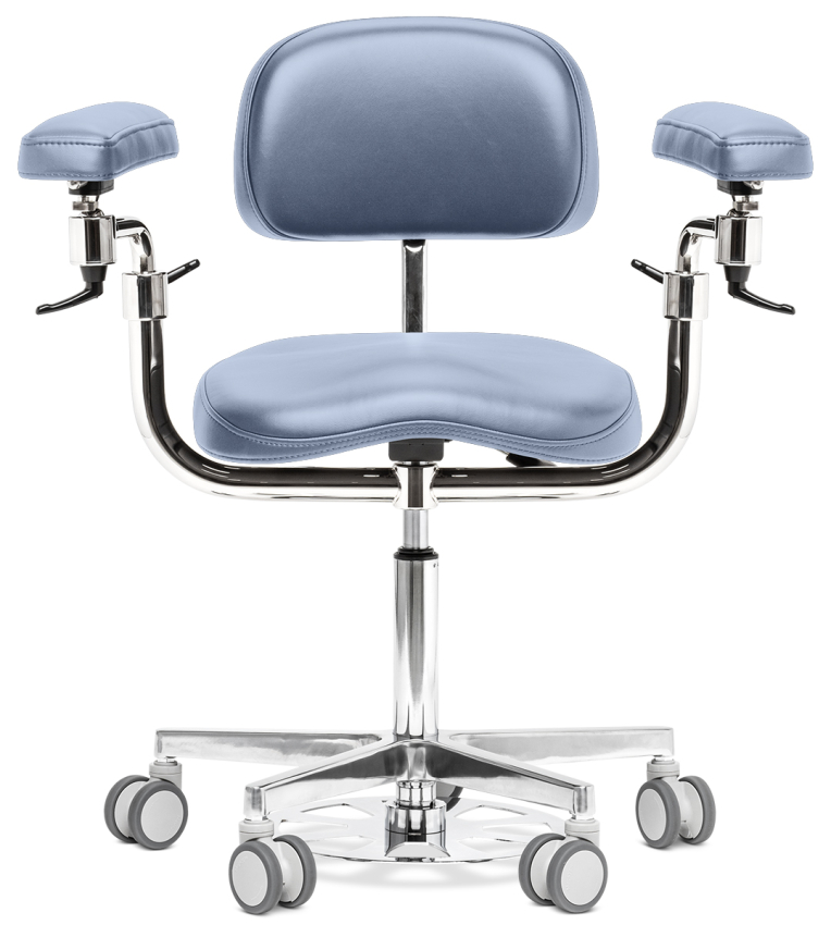Механизм локтевого упора используется во всей линейке Elite позволяет комфортно настроить положение для человека с любой комплекцией, что увеличивает его универсальность, так как вы можете вести общую практику и работать за микроскопом.